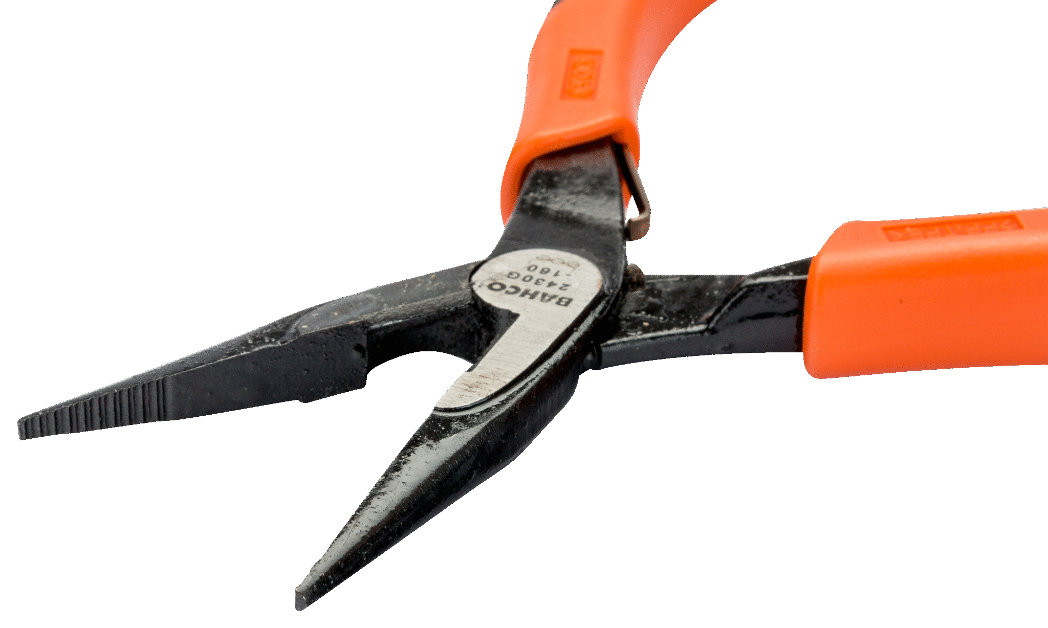 Lange, halvcirkelformede kæber med tværriflede gribeflader.