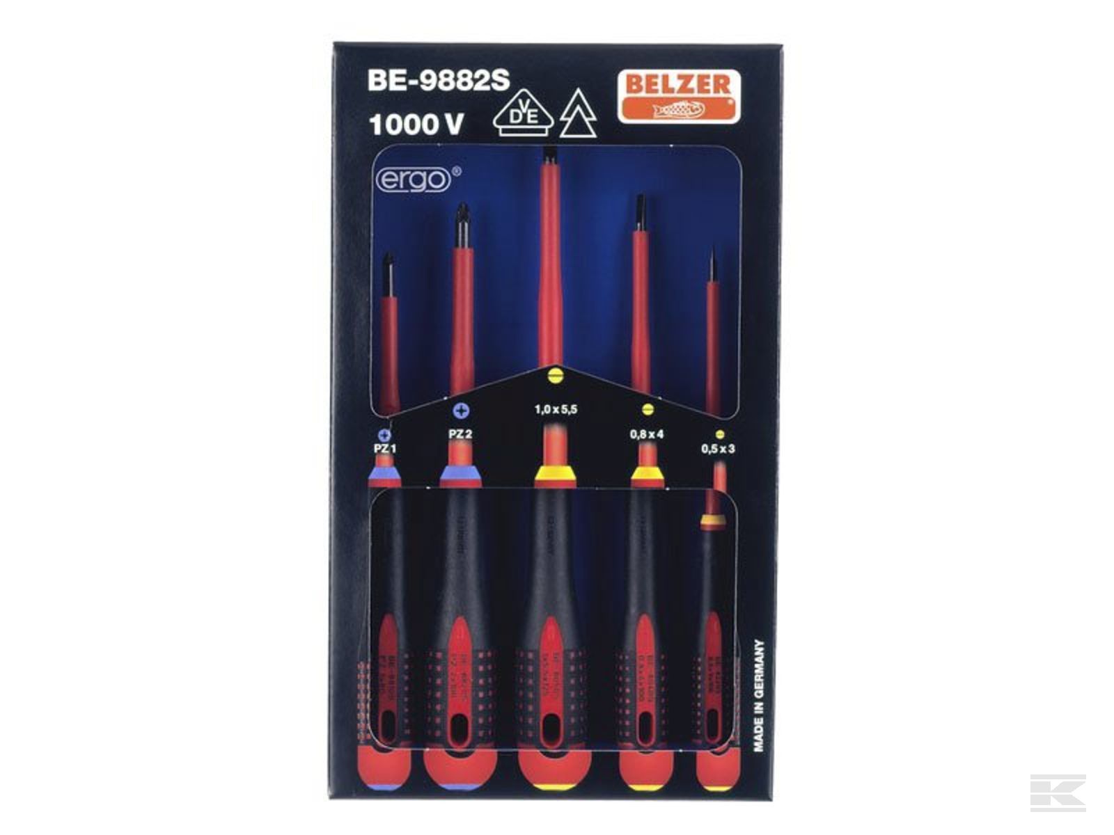 Skruetrækkersæt VDE BE-9882s fra Bahco.1000V 5 stk. lige kærv + PZ