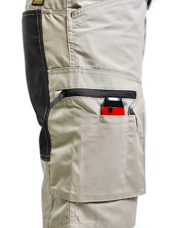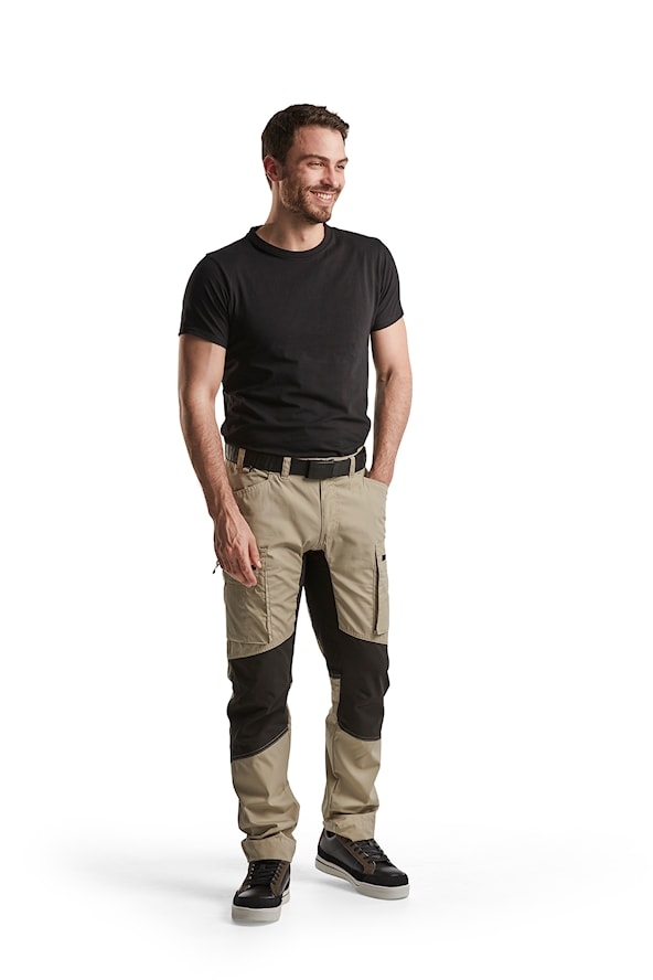 Buksen har stretch i skridtet, på bagdelen og ved knæ for at give stor bevægelsesfrihed. Pen- og knivlommen er tilpasset højre- og venstrehåndet.