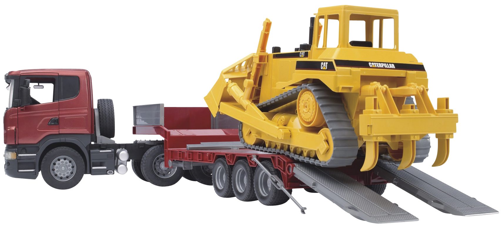 Bruder lastbil med blokvogn og Caterpillar bulldozer Scania R-serie LKW 1:16 87 x 18 x 26 cm