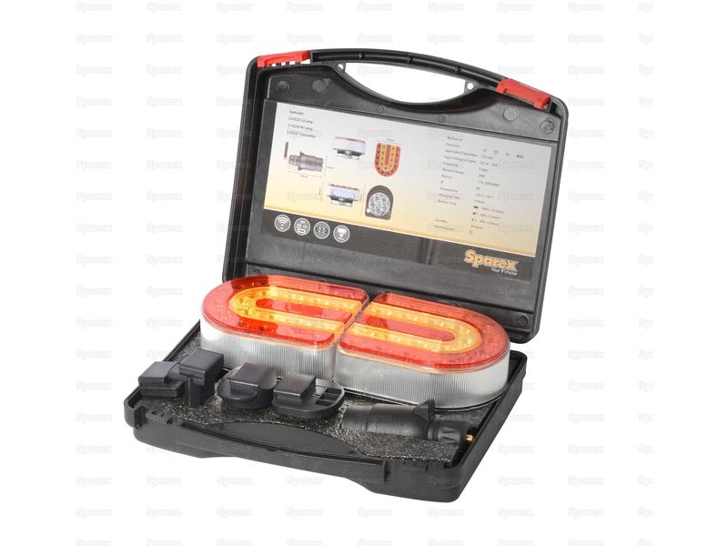 Sættet Indeholder: 1 Venstre Baglygte, 1 Højre Baglygte & 1 Transmitter