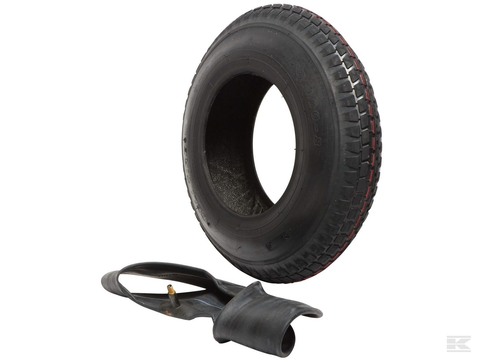 Dæk 4.00 x 8-4 lag med slange ST-16 TR13 mest solgte trillebørdæk. Diameter 399mm, bredde 102mm.