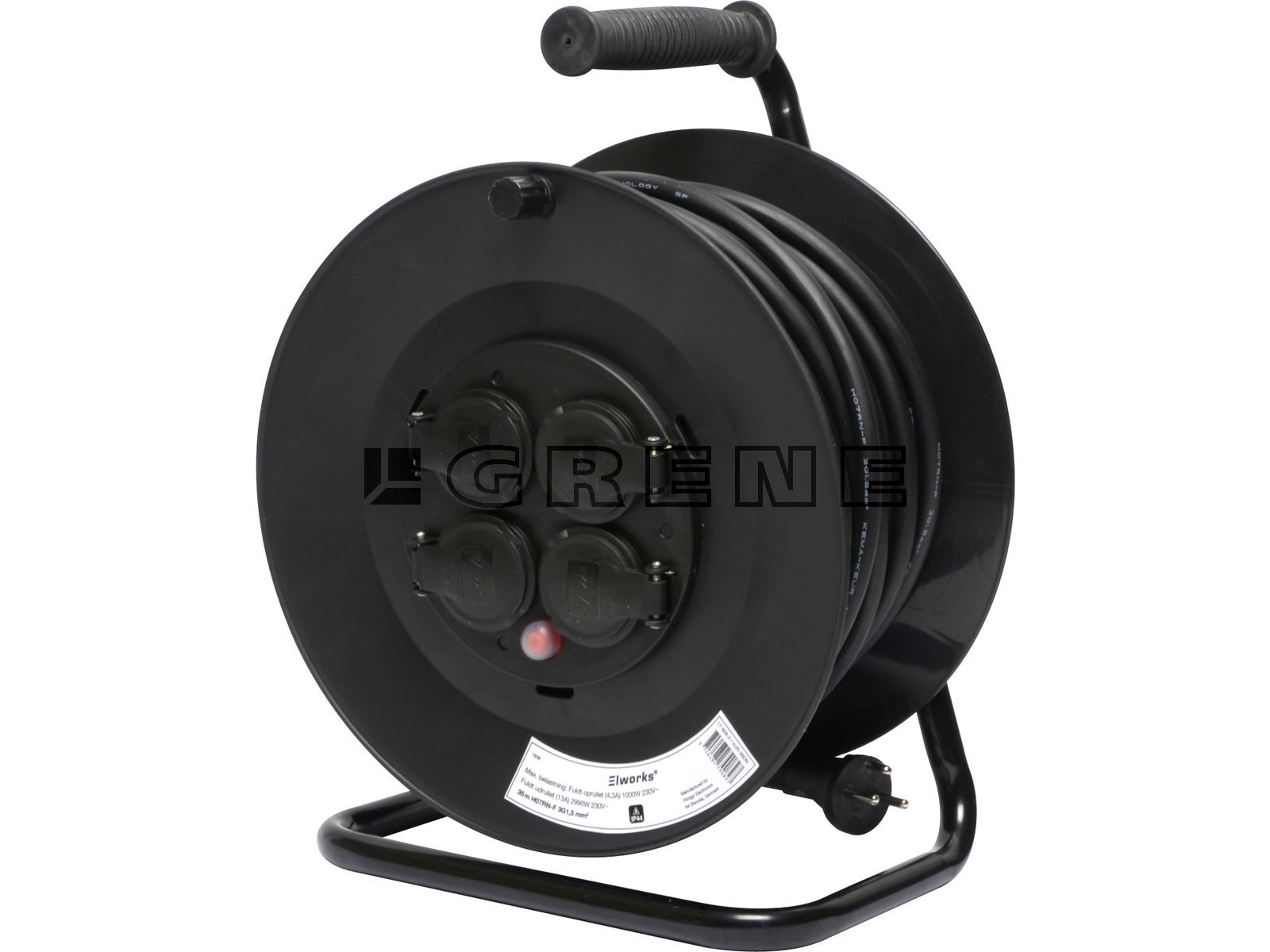 Elwis kabeltromle Pro med jord 3G1,5 - 35 m med 4 udtag. IP44. med gummikabel. U/Pillesikring.