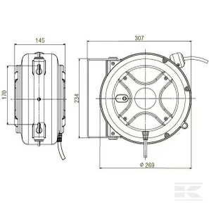 Flowcontept mini automatisk slangeopruller med 7 meter slange i lukket plastboks Max arbejdstryk 12 bar. 8/12 mm x 7 meter PUR slange. Leveres med drejbart vægbeslag.