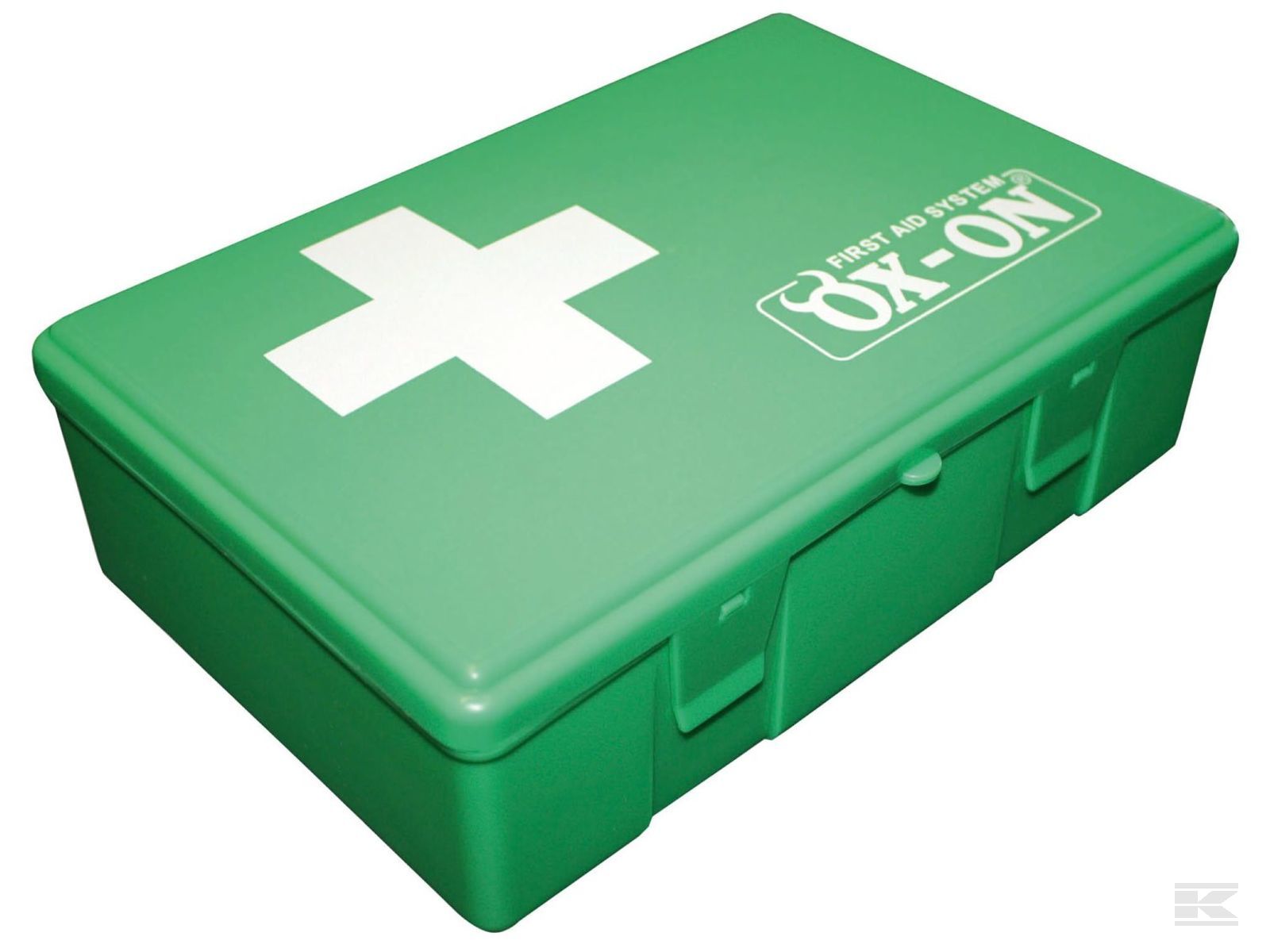 OX-ON Førstehjælpskasse, Velassorteret indhold ud fra arbejdstilsynets anbefalinger.