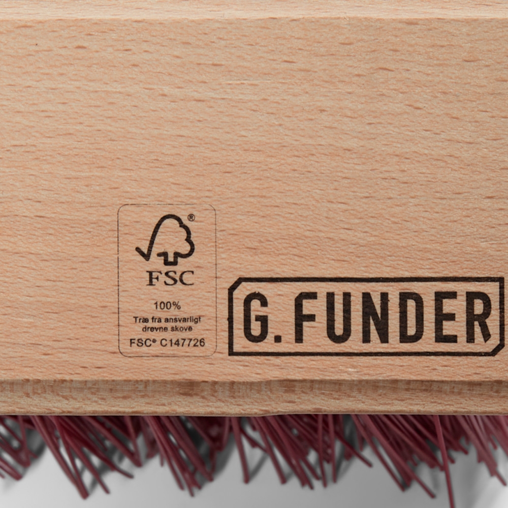Gadekost m/træskaft, 20 rækker fra G. Funder. Denne halvstive, røde gadekost er skabt til at gøre arbejdet lettere og mere miljøvenligt.