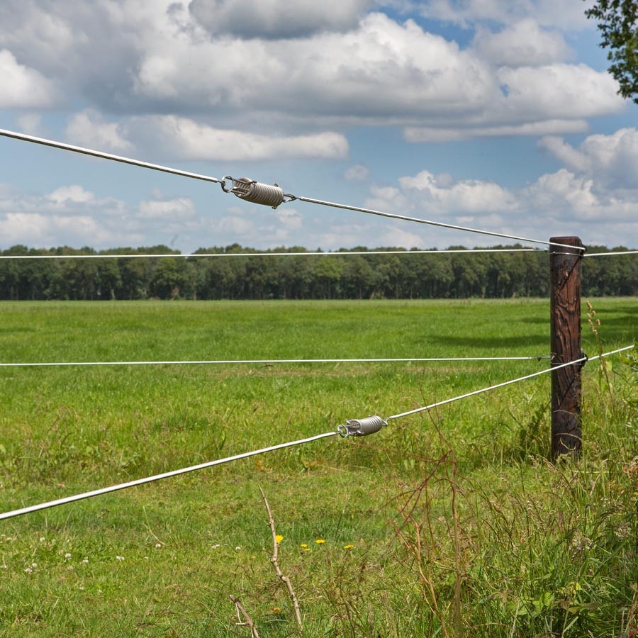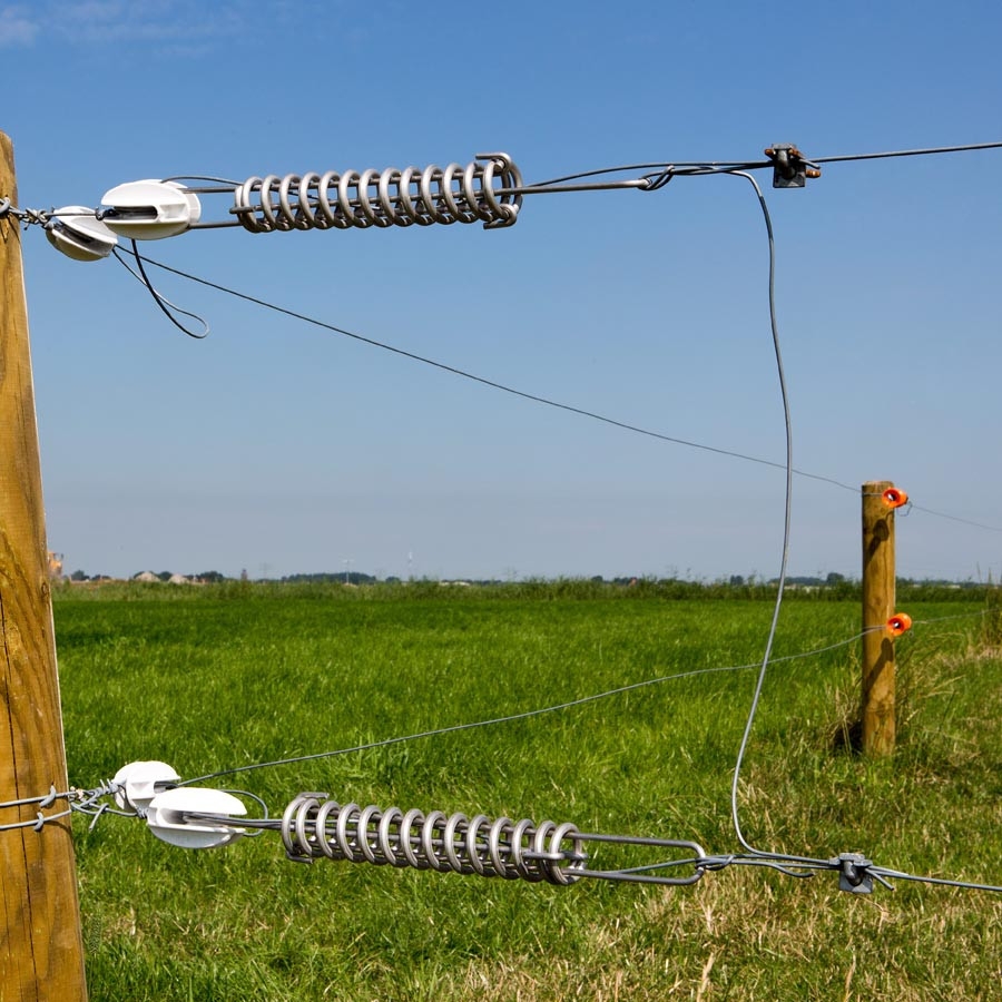 Holder tråden lige spændt både sommer og vinter, hvilket gør at du kan fordoble pæleafstanden (op til 15 m).