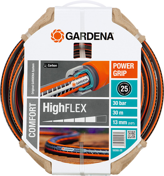 GARDENA Comfort HighFLEX Slange med Power Grip-profil garanterer den perfekte kobling mellem slange og slangekobling. Disse låses sammen ligesom tandhjul, takket være ny teknologi. Power Grip-profilen gør dét muligt, som mange haveejere længe har ønsket sig: en pålidelig kobling med perfekt holdekraft. En positive sideeffekt af den hævede profil: Slangen er nemmere at rulle op og glider godt. Takket være den tætte spiralvævstekstil i høj kvalitet med to spiraler, som arbejder i modsatte retninger, er slangen trykfast og beholder sin form, men er samtidig mere fleksibel i anvendelse end Comfort FLEX Slangen. Det skyldes den øgede tæthed i spiralerne, som gør slangen mere fleksibel og nemmere at håndtere. Ingen knuder på slangen og ingen snoninger. Disse er de bedste forudsætninger for praktisk og fleksibel brug i din have. Den kan systematisk suppleres med Original GARDENA System-fittings og tilkoblingsenheder, hvis det kræves. Den indeholder ingen skadelige (ftalater) og tungmetaller, og den er naturligvis UV-resistent. De tykke vægge gør den meget robust og holdbar. Øvre trykgrænse: 30 bar. Garanti: 25 år.