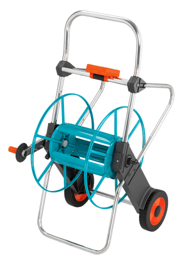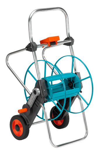 Gardena slangevogn er stabil og står sikkert på plænen eller terrassen takket være brede, specielt formede fødder. Takket være de robuste hjul med en speciel profil, kan du let trække eller skubbe slangevognen over plænen uden at beskadige den.