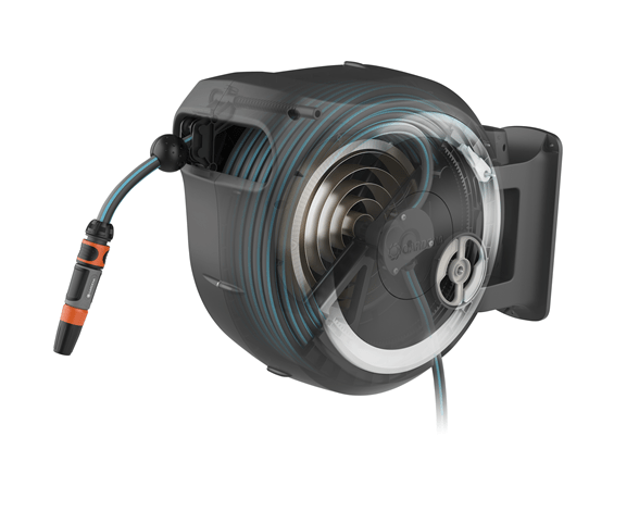 Slangen trækkes jævnt ind uden at knuder eller snoninger takket være den integrerede slangestyring.