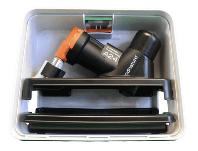 Kit Indeholder: 1 stk. A24 automatisk muse- og rottefælde, 1 stk boks med nøgle, 1 stk. Trap stand, 1 stk. automatisk lokkemadsbeholder (inkl. lokkemad), 2 stk. CO₂-patroner, 3 stk. sporingskort til optimal placering, 1 stk. brugsanvisning.
