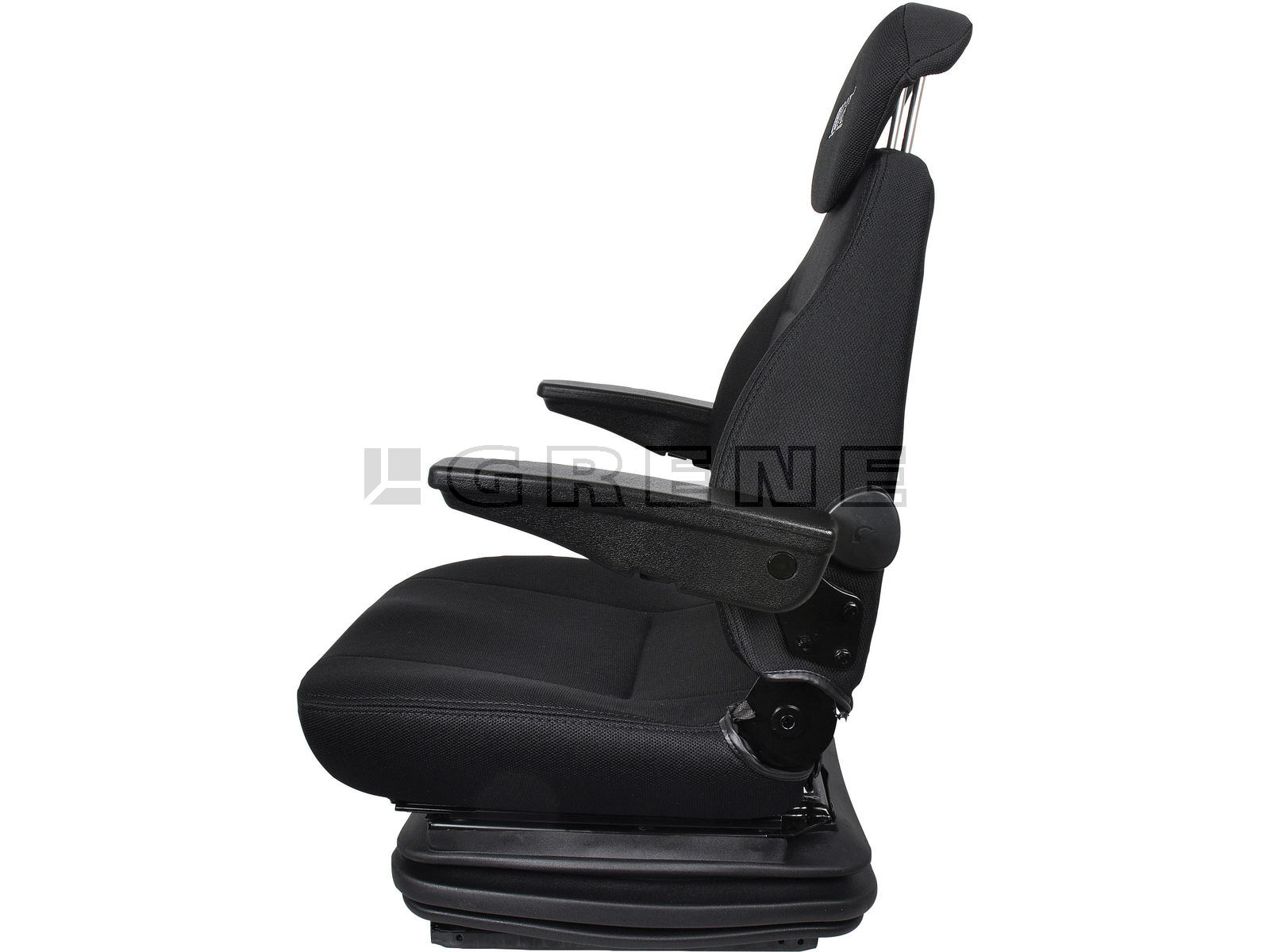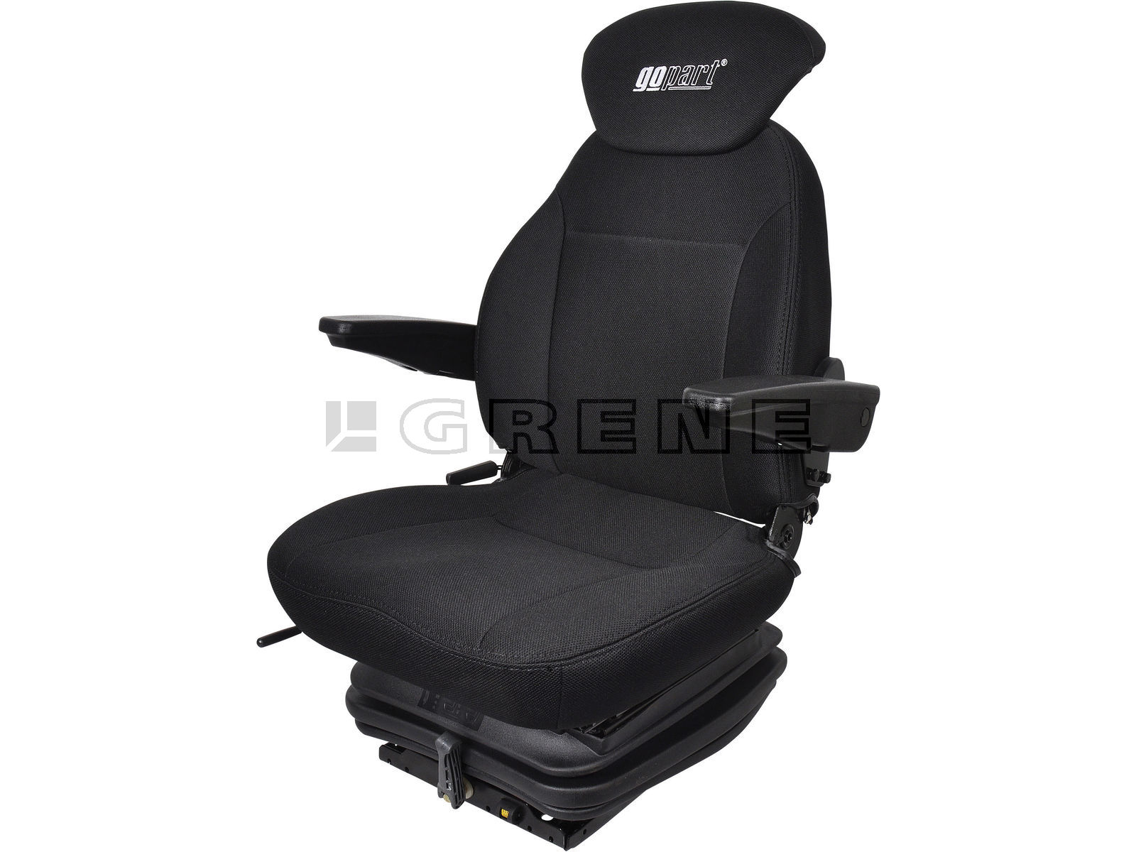 Traktorsæde i sort stof med mekanisk affjedring. Bredde: 43 cm Højde: 75 cm Vægt: 32 kg