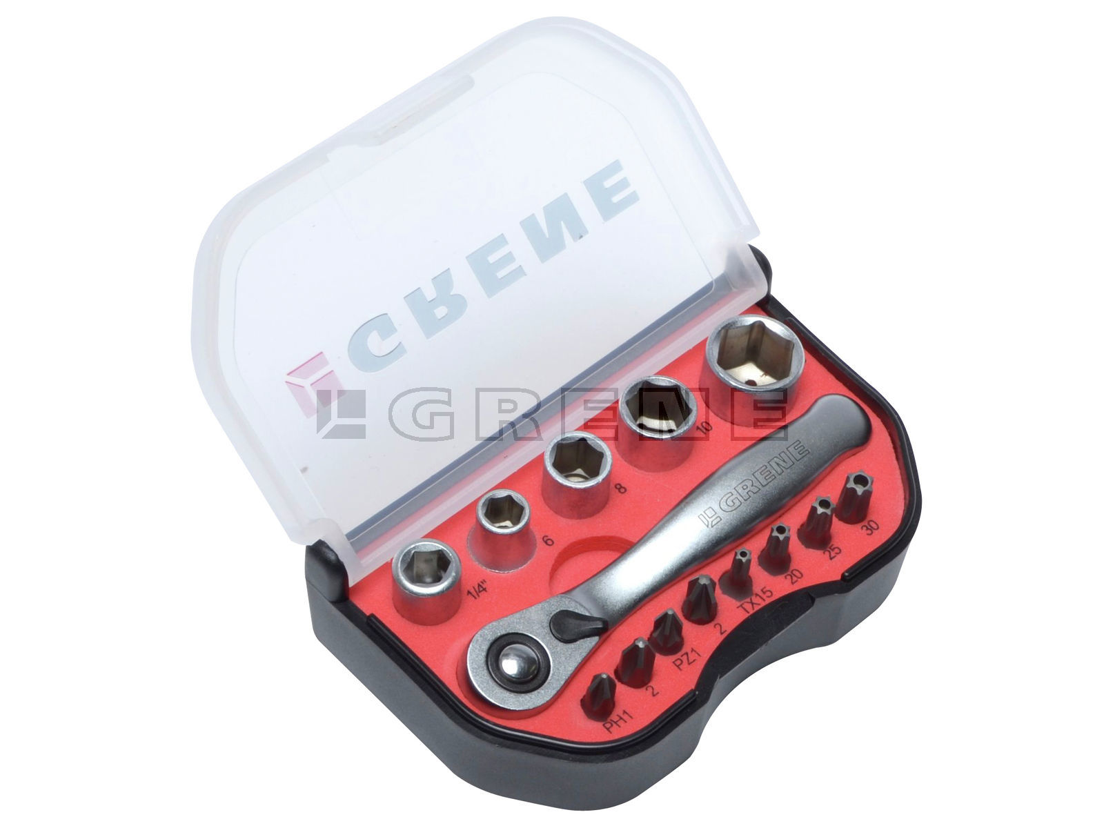 - Grene Mini topnøglesæt i 1/4' - 14 dele