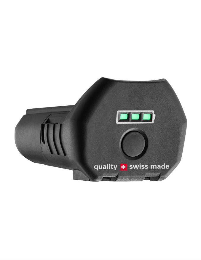 Med indbygget batteriindikator. Udviklet og produceret i Schweiz.