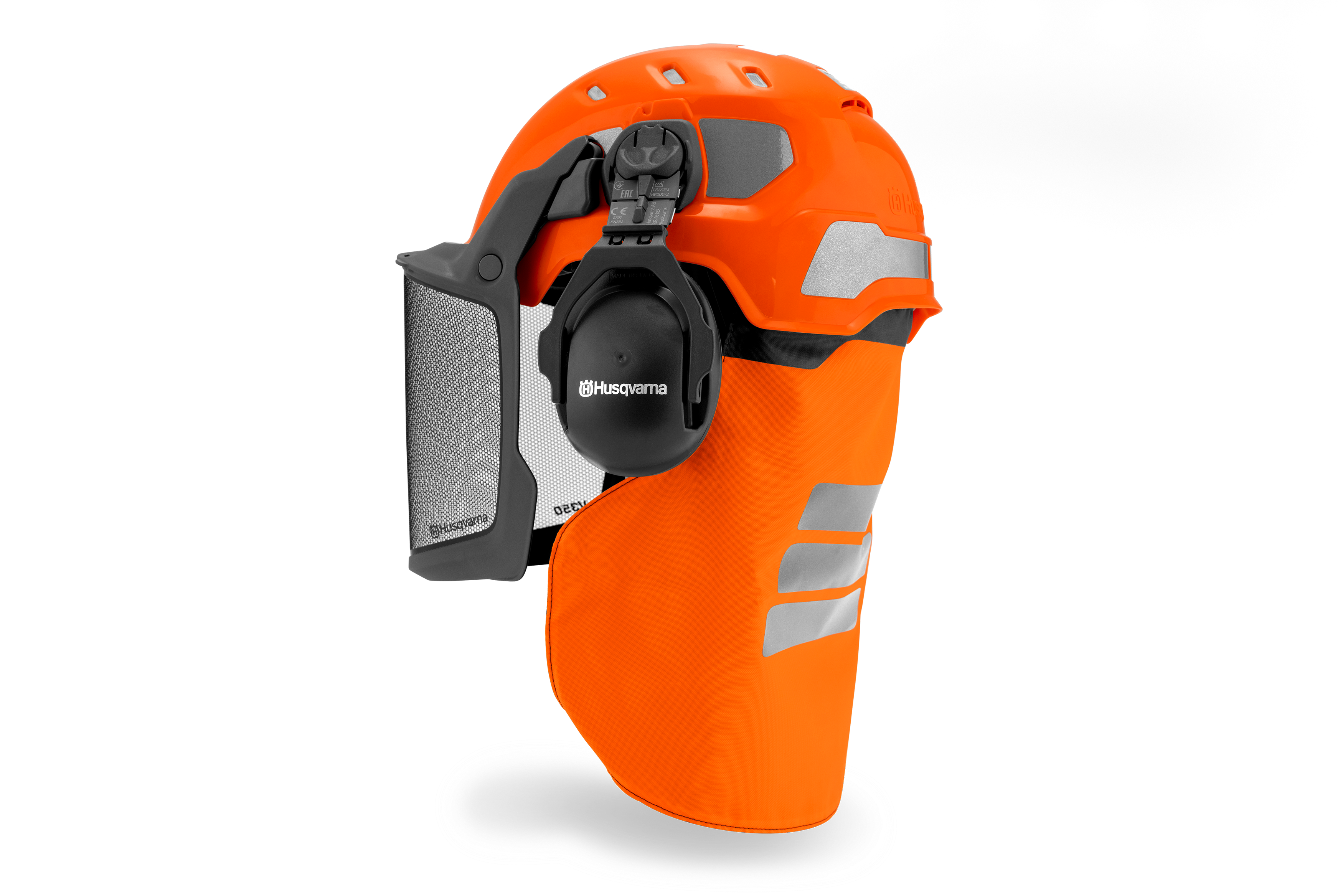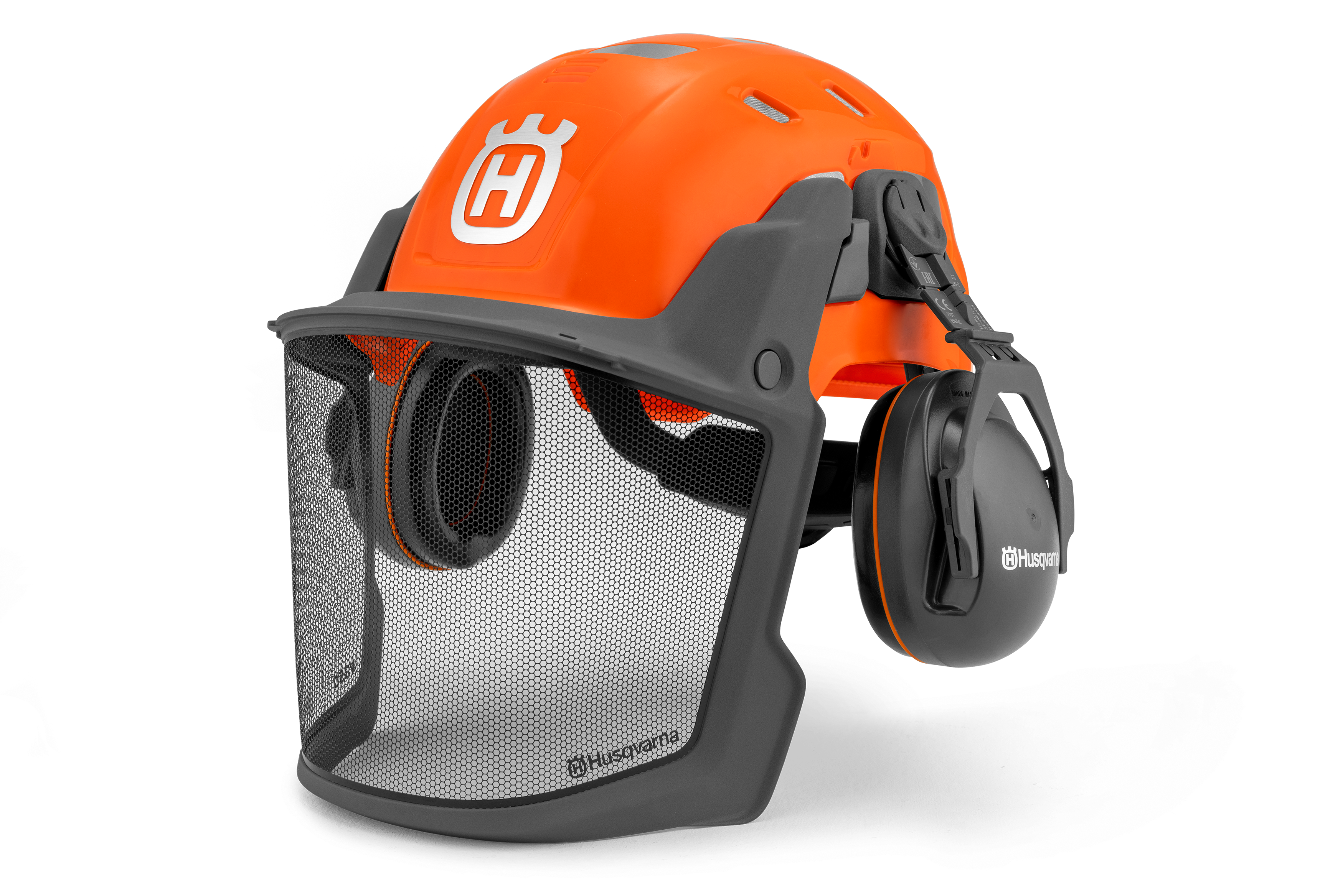 Letvægtshjelm velegnet til professionelt skovarbejde.