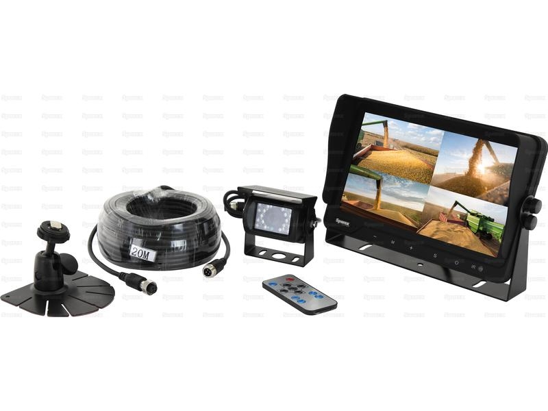 Indeholder: 1 x 9'' 4QUAD split digital touch HD monitor med audio, 1 x 20m 4PIN kabel, 1 x digitalt trådløst CMOS kamera med mikrofon, 1 x aftagelig solskærm, 1 x justerbar støtte, 1 x Manual