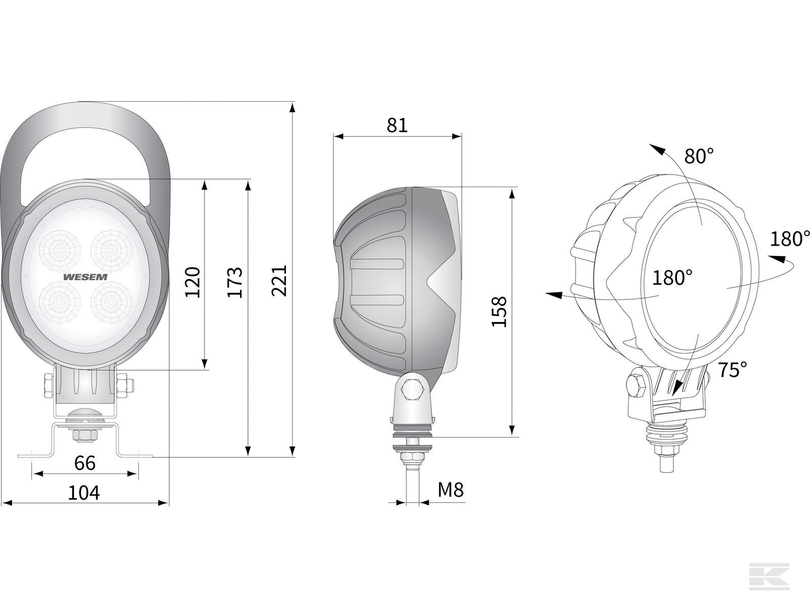 LED arbejdslygte 10-30 Volt - 18 W 1500 Lumen Til top eller bund montering. Lysspredning: 60° - Arbejdstemperatur område: -40°C - +80°C Class:IP 68/69K - Størrelse: Ø117 x 74mm