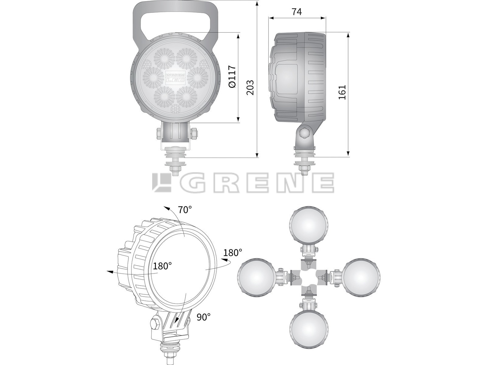 LED fjernlygte 10-30 Volt - 24 W 1500 Lumen Arbejdstemperatur område: -40°C - +80°C Class:IP 68/69K Lysspredning: 4° - Størrelse: Ø117 x 74mm