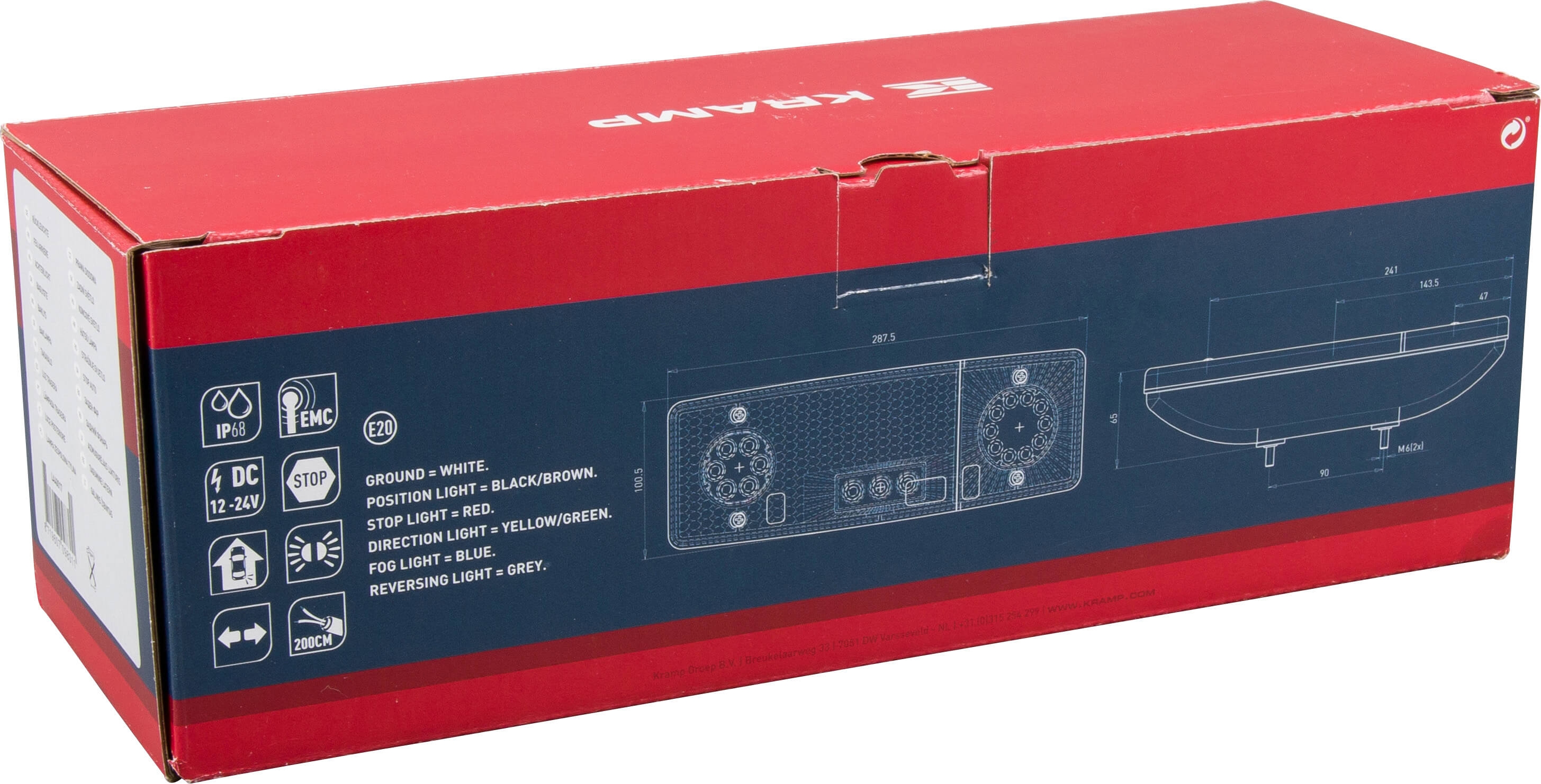 Funktion: Positionslys, bremselys, blinklys Dimensioner L: 287.5 B:100.5 H: 65mm Leveres med 2 mtr. ledningProdukt specifikationer