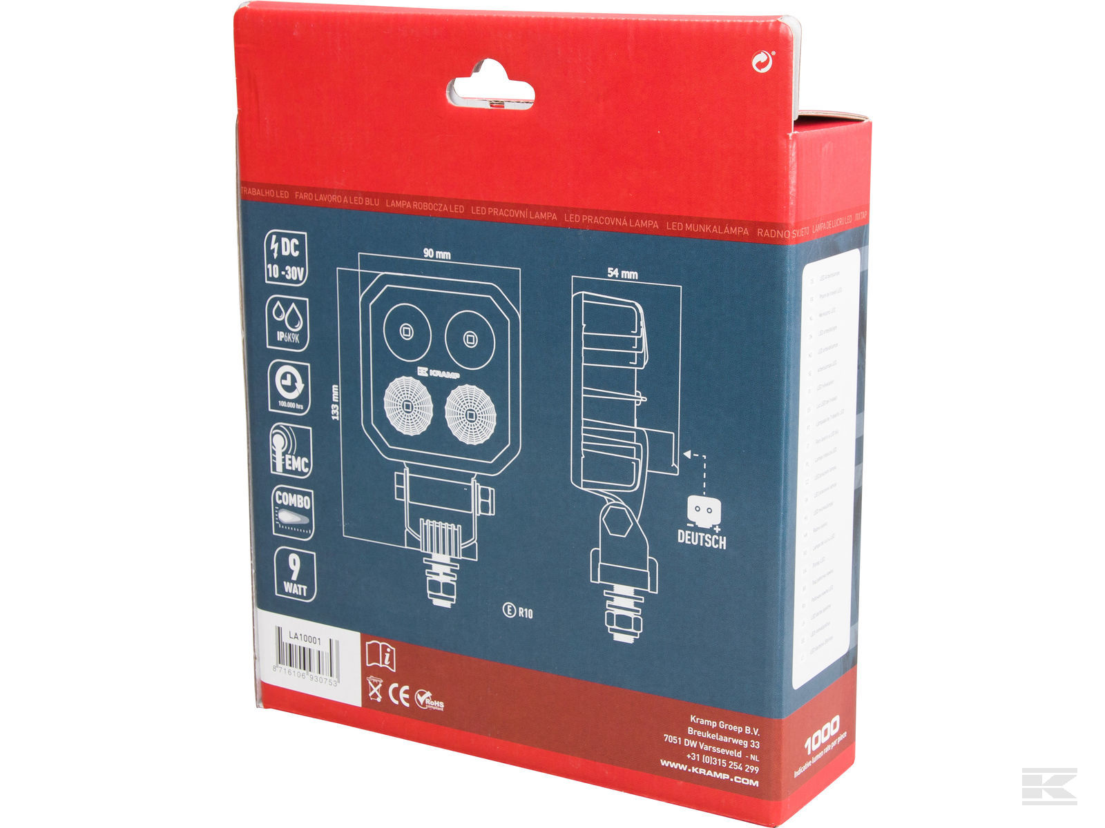 1000 Lumen 9W med Deutsch stik.