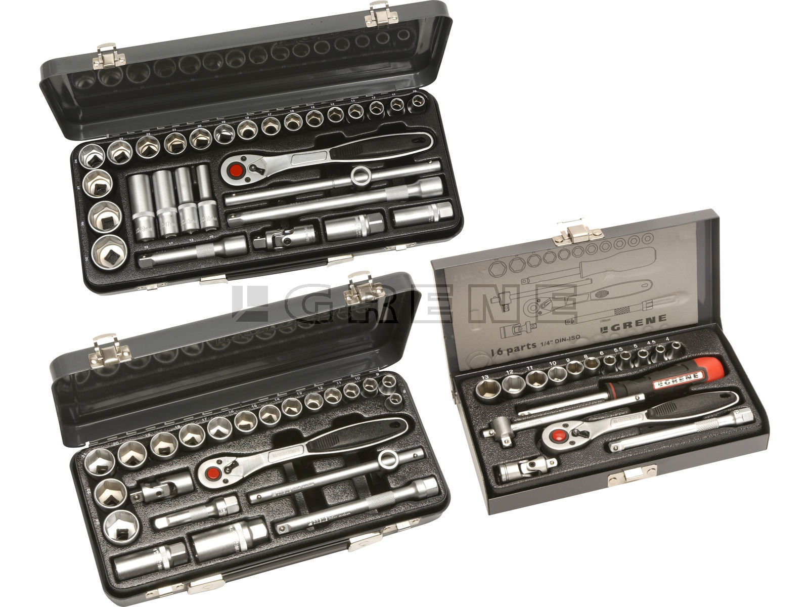Grene Topnøglesæt 1/4" 16-dele - 3/8" 23 dele og 1/2" 29-dele