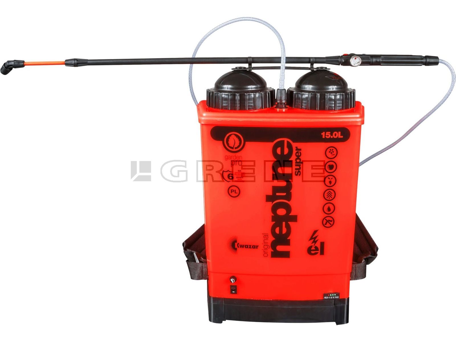 Kwazar Neptune el-rygsprøjte 15,0 liter. Leveres standard med 65 til 120 cm teleskoplanse. Kwazar er en af de førende producenter af sprøjter i Europa. De har et bredt og stærkt program i sprøjter til både private og professionelle. Sprøjterne er udført i professionel kvalitet, som sælges til fornuftige priser. Kwazar sprøjterne har innovative løsninger og praktiske finesser ud over det sædvanlige.