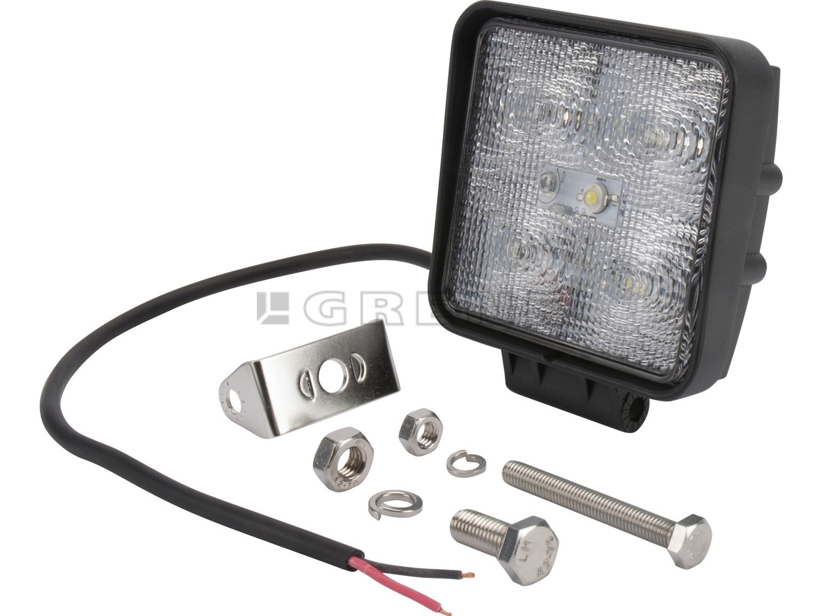 Steel Power LED arbejdslygte 10-30V 15W 60º lysspredning til nærområde. 5x3W dioder. Lygtehus i aluminium. Beslag i rustfri stål. IP67.