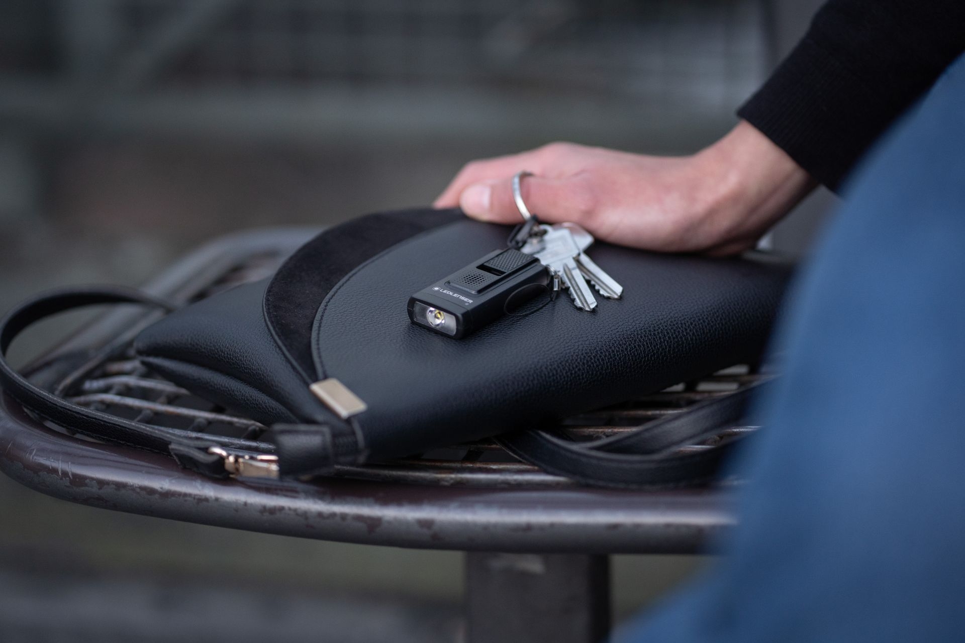 Den kompakte K6R nøgleringslygte har et let tilgængeligt skingrende alarmsignal, der kan afskrække en angriber eller fungerer som et højt råb om hjælp.