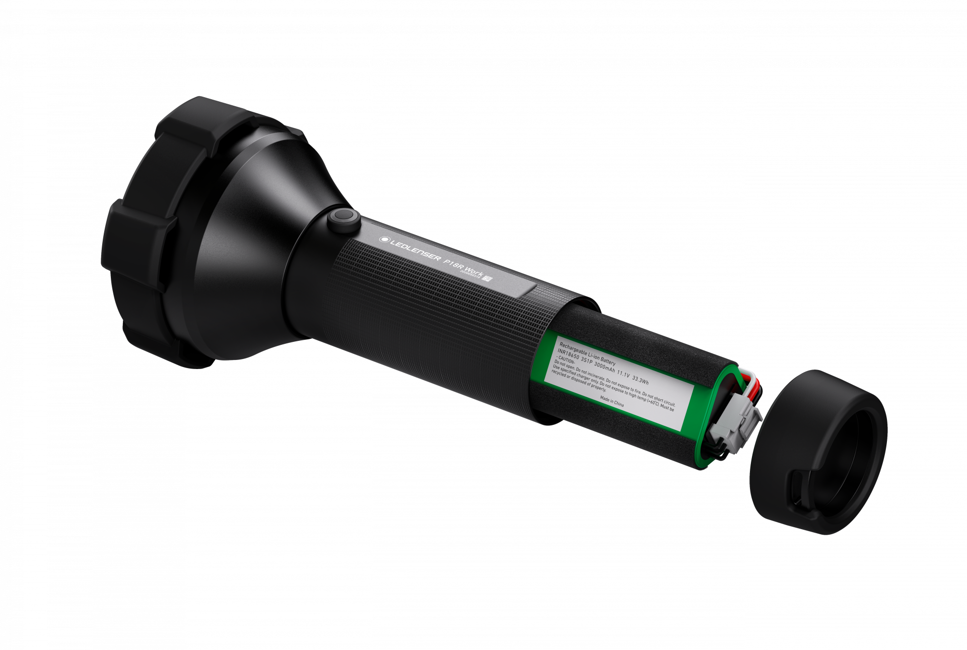 Gummibelagt top og bund for bedre beskyttelse af stavlygten som samtidig sikre et godt greb om lygten. P18R Work er robust bygget til at holde til stød, slag, væske og mange andre 'strabadser'. Den måler godt 18 cm i længden, og vejer 669 gram.
