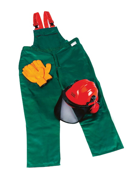 Makita sikkerhedssæt indeholder overalls kl.1,(20m/sek) handsker og skovhjelm med visir og høreværn.