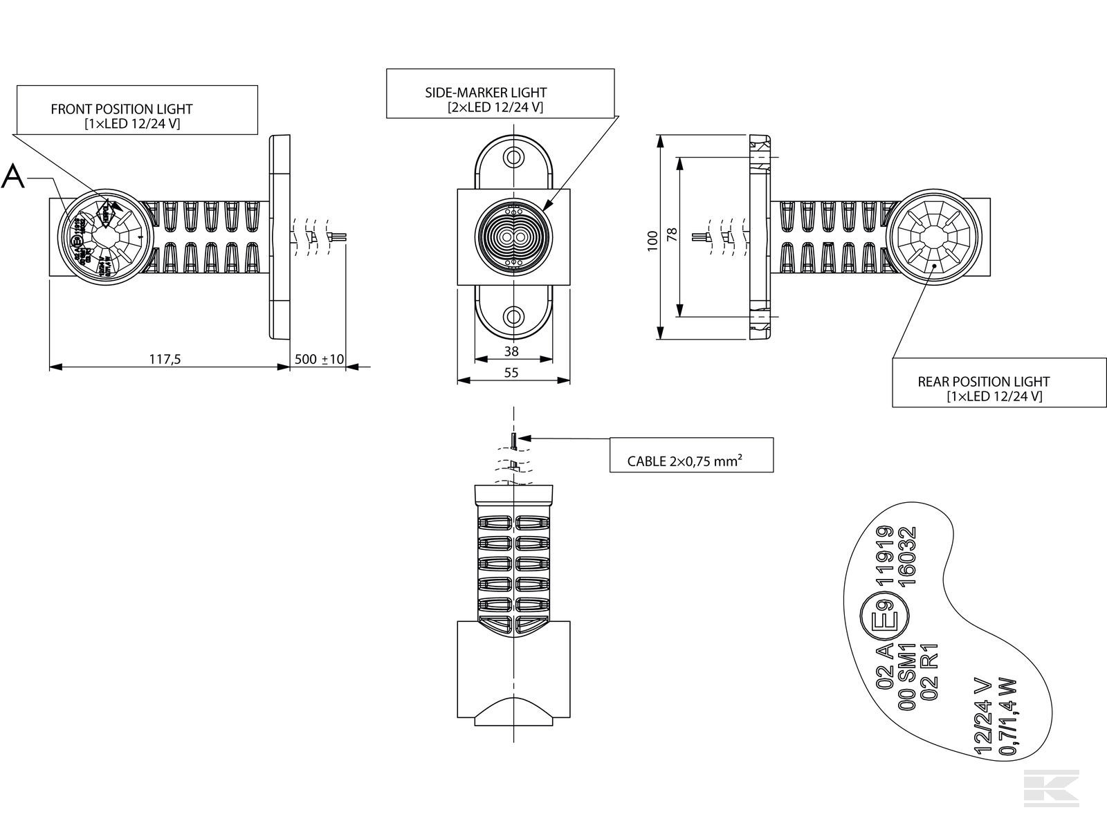 LED lige markeringslygte fra Kramp.
