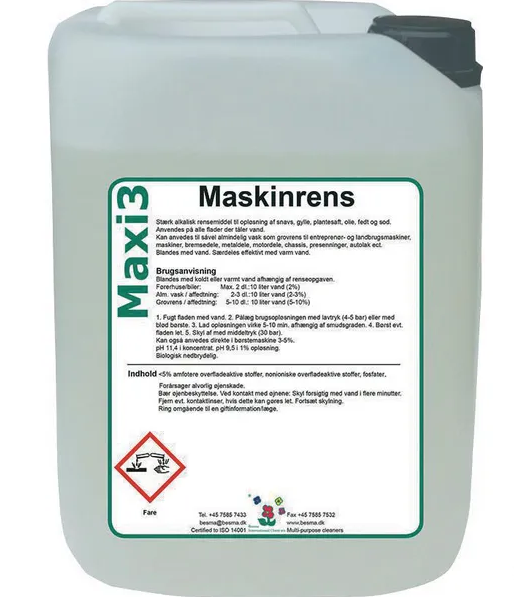 Brug Maxi Maskinrens til almindlig vask eller grovrens på maskiner, bremsedele, motordele, chassis, metaldele, presenninger, autolak osv.