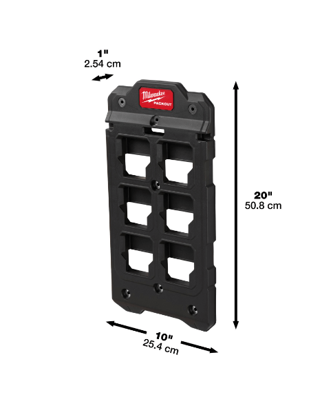 Denne lille Packout monteringsplade er ideel til vægophæng og gør det let at opbevare værktøj på væggen i dit værksted eller i bilen.