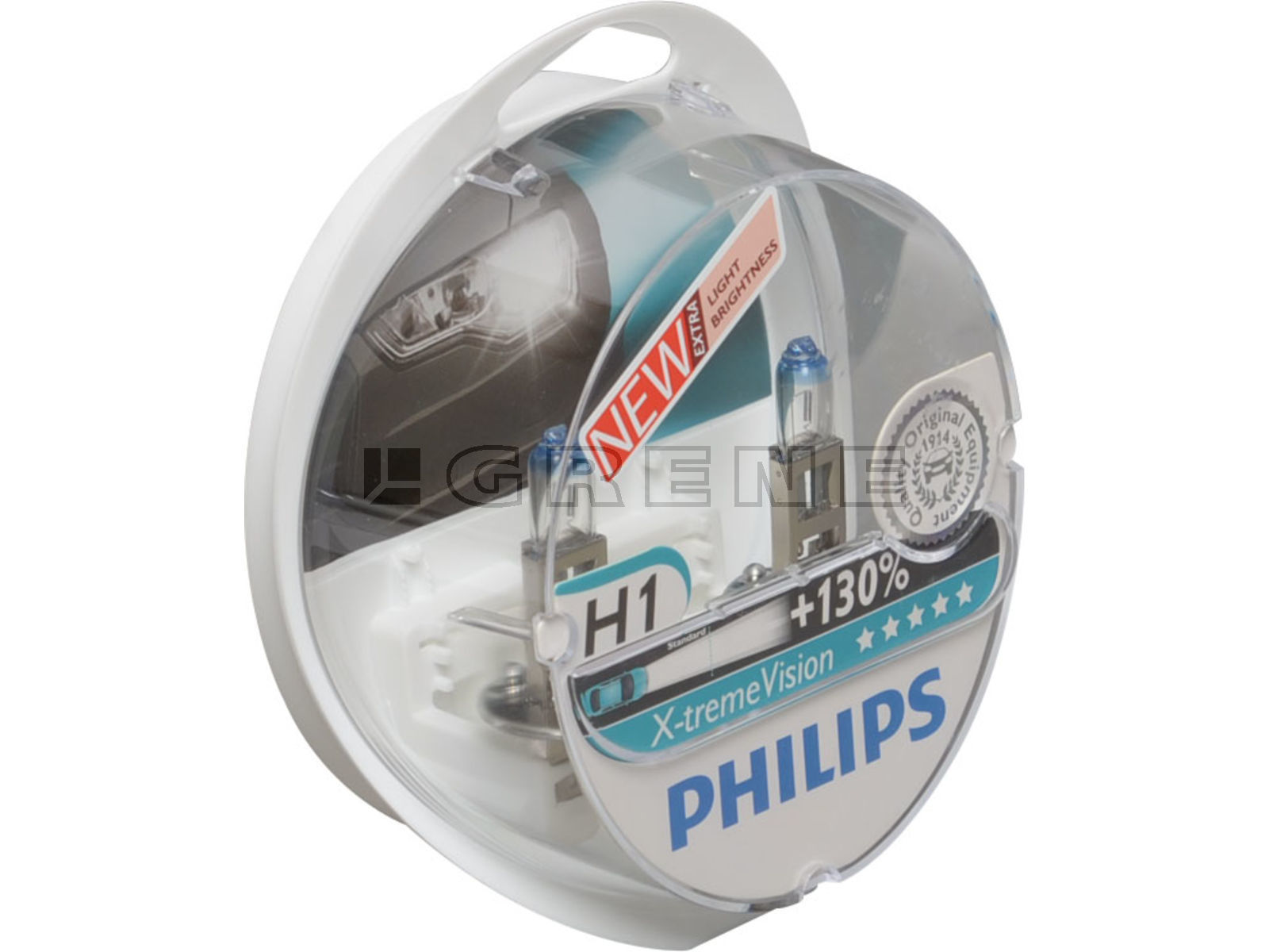 Pære 12V H1 55W X-tremeVision+ 2 stk salgsforpakning. X-tremeVision+ giver op til 130% mere lys på vejen sammenlignet med standard pærer.