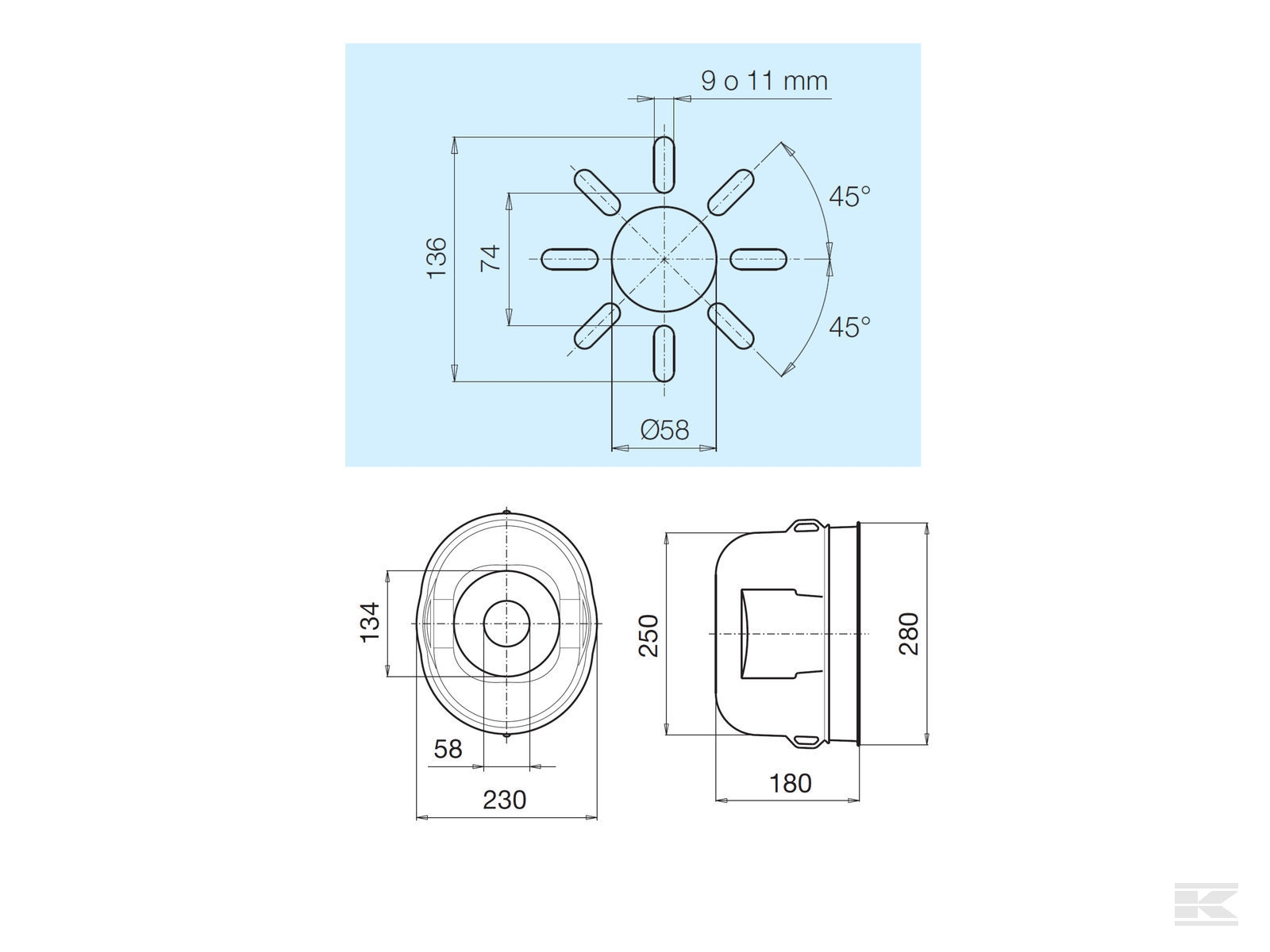 PTO Skærm Oval L: 180 mm D: 280 mm Sort