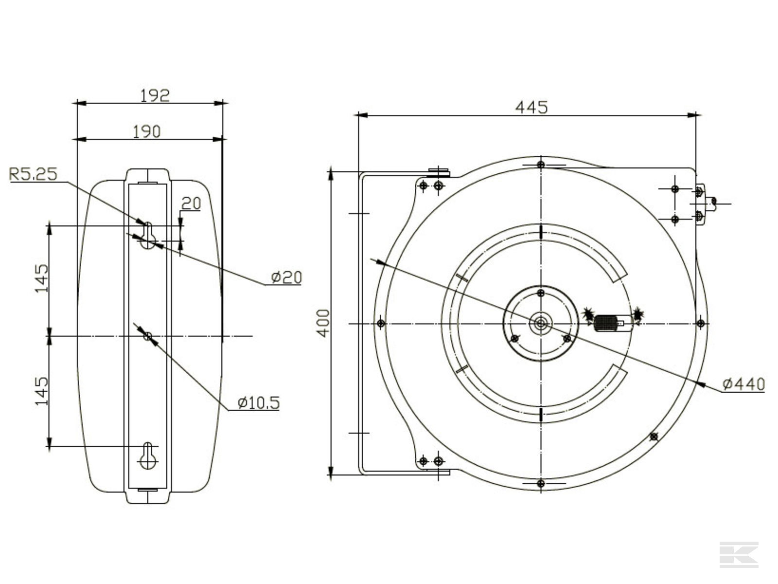 - Slangeopruller automatisk 1/2' x 20m med spulepistol