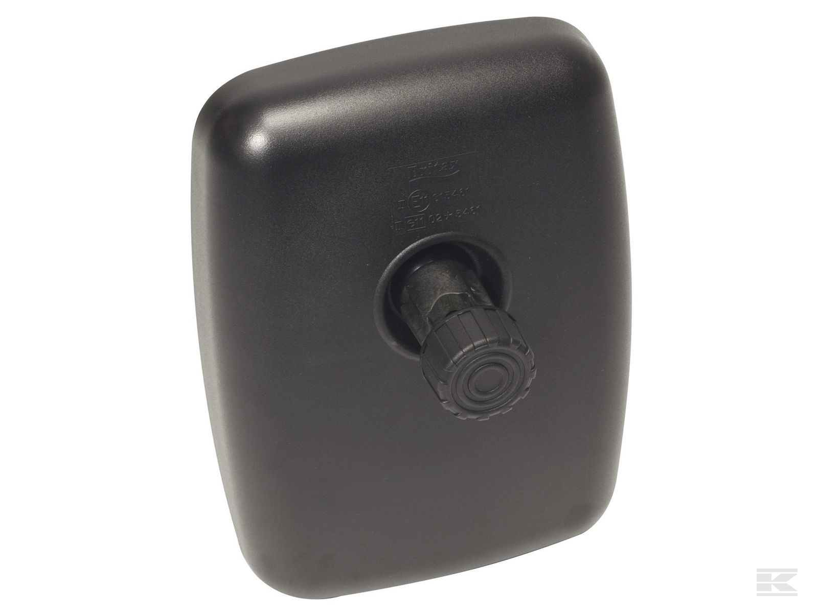 Spejlhus i sort kunststof, slagfast, konveks spejlglas.