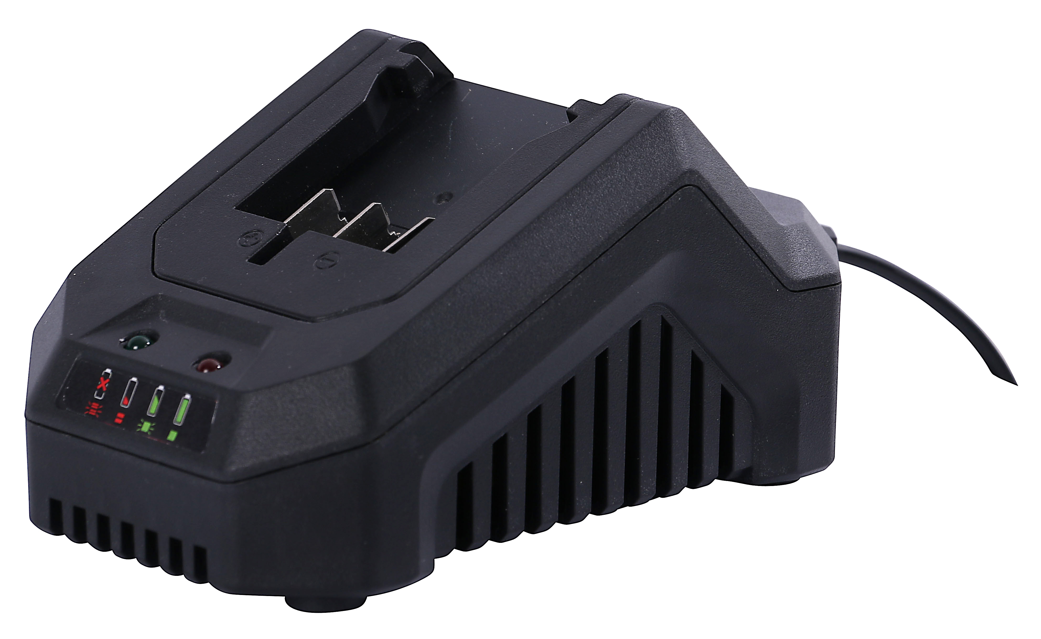 Lader til 20V batteri 2,0 Ah og 4,0 Ah. Fuld ladetid: 60 min for 2,0 Ah batteri 120 min for 4,0 Ah batteriLevering
