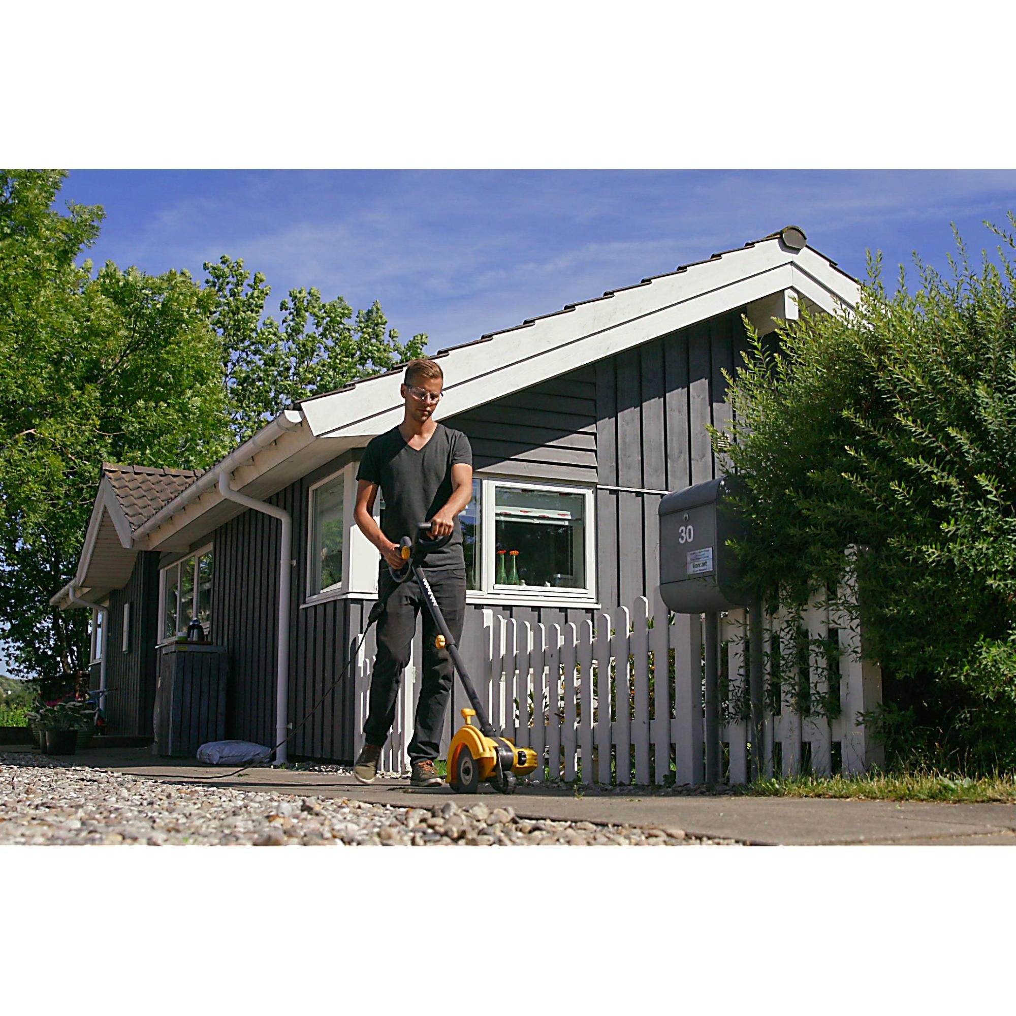 Denne Texas kantskærer er en elektrisk kantskærer med en kraftig 1400 W elmotor og et justerbart teleskophåndtag, som gør arbejdet lettere samt nem at transportere og opbevare. Den er udstyret med et stort baghjul, der sørger for at stabilisere arbejdet og gør det meget lettere for dig at manøvre og styre kantskæreren. Generelt er maskinen meget brugervenlig.En Texas EC1400 elektrisk kantskærer giver dig nogle flotte lige kanter på din græsplæne. Idéen med en kantskærer til græsplænen er, at du får den sidste smukke finish med, når du har klippet græsset på plænen. Med en elektrisk kantskærer er du desuden også fri for at skulle købe og hælde benzin på løbende.Modellen har desuden også en ekstra beskyttelse, der gør, at du nemt og sikkert kan arbejde langs med f.eks. flisekanter uden at risikiere, at du kommer til at beskadige kniven på kantskæreren. Der er desuden 3 justerbare dybder (15/28/38 mm), som du selv indstiller alt efter dit behov.Texas EC1400 kommer desuden også med en Texas fliserenser, så terrassen både er pæn og med kantskæreren står den naturligvis også knivskarpt ud til græsset.Tekniske data om vores Texas EC1400 elkantskærer inkl. fliserenser - kantskærer til græsplæneElmotor 1400 watt - 230 voltJusterbar teleskophåndtagArbejdsdybde: 15/28/38 mmSkaft: TeleskopInkl. Texas fliserensersætVægt: 6,8 kg.Saml-selv pris