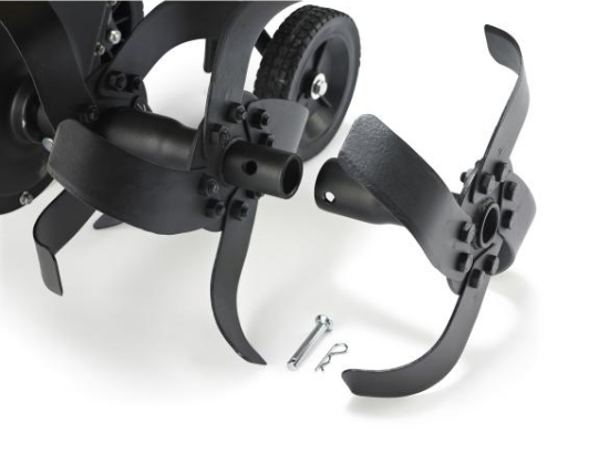 Udstyret med et solidt styr, ergonomiske håndtag og transporthjul, som justeres manuelt.