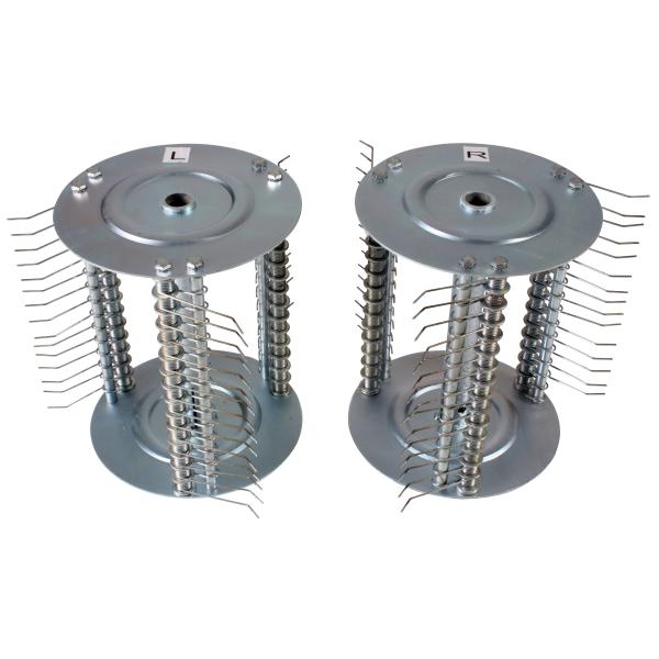 45 fjedre fordelt på tre rækker på hver rulle, der river mosset op.