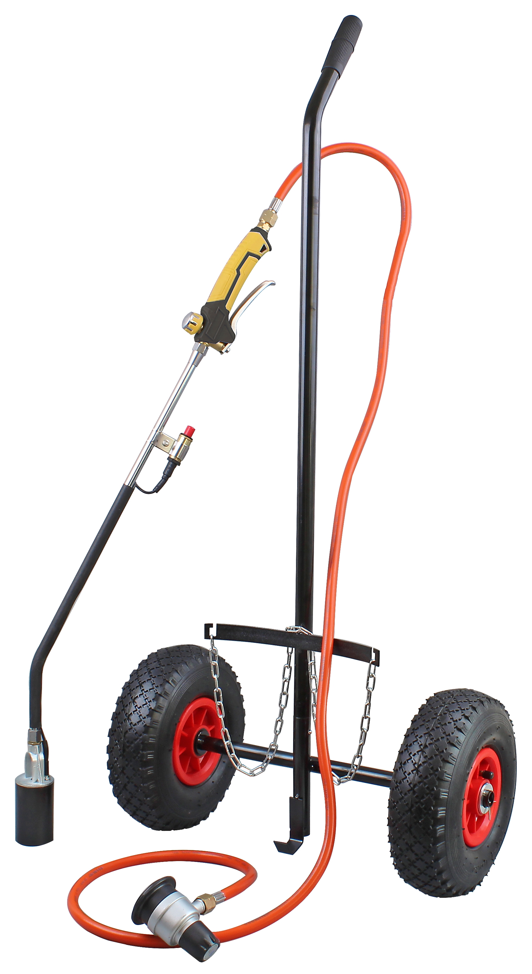 Kraftig brænder fremstillet i stål. Det store brænderhoved gør den ideel til bekæmpelse af ukrudt på større arealer som gårdspladser, indkørsler, flisegange eller lignende.