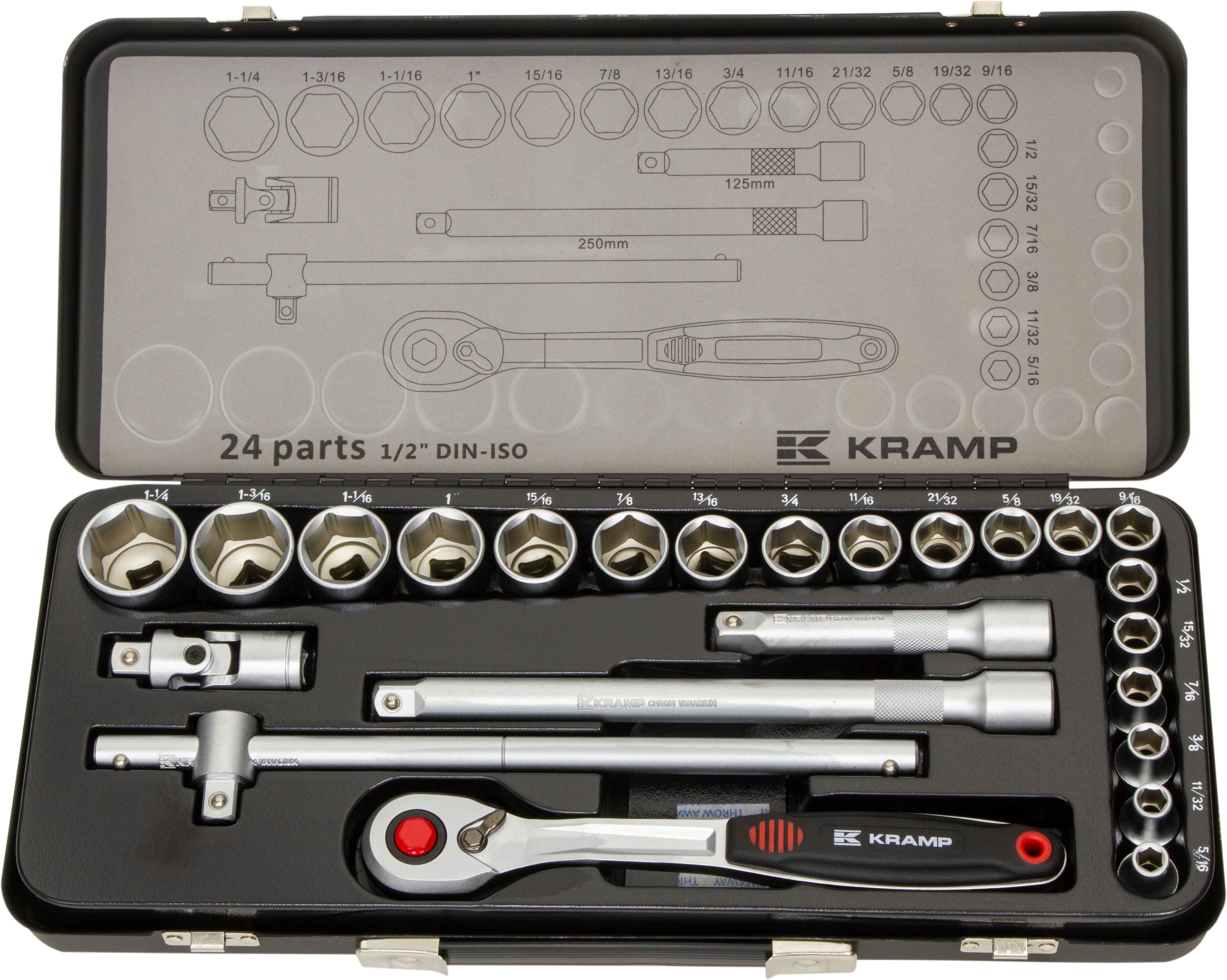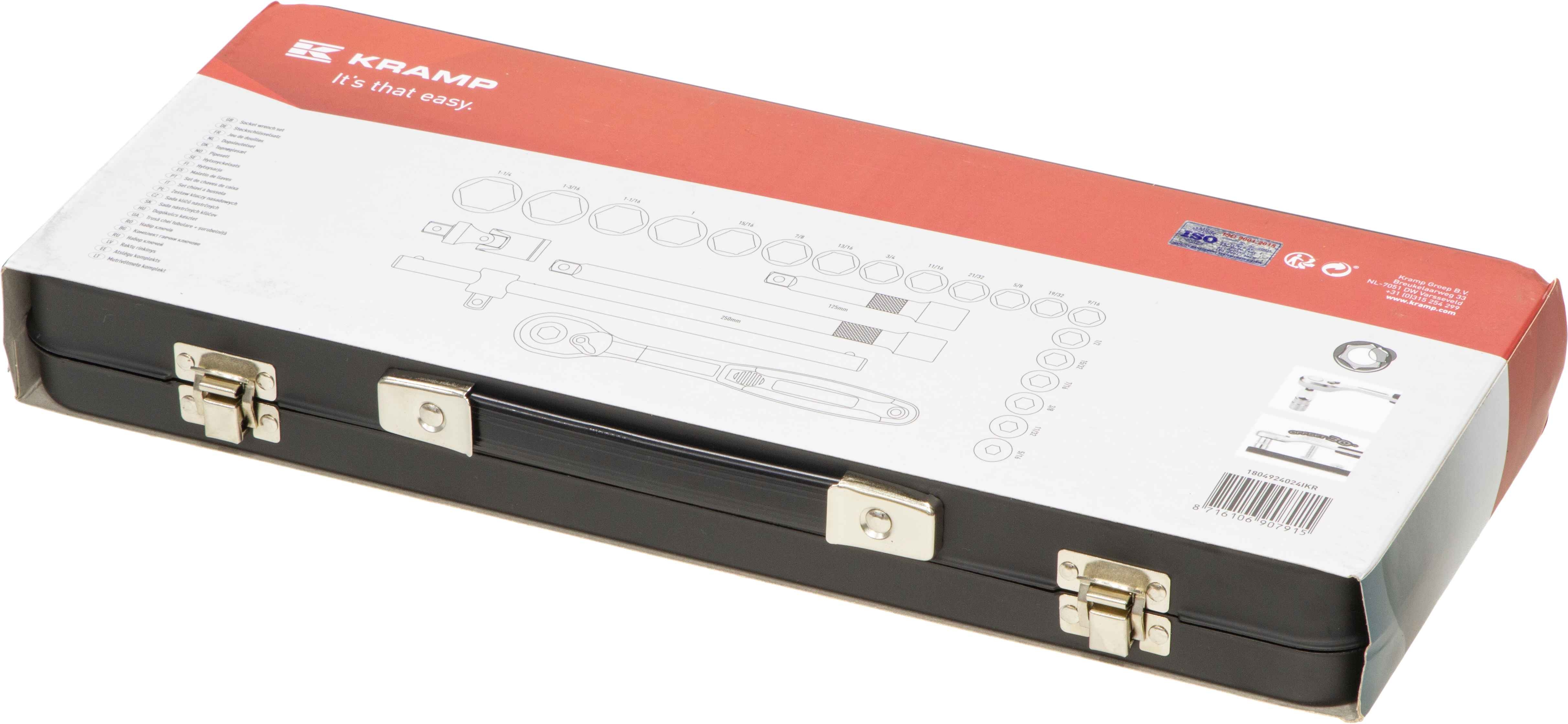 1/2" topnøglesæt i tommer med 24 dele fra Kramp.