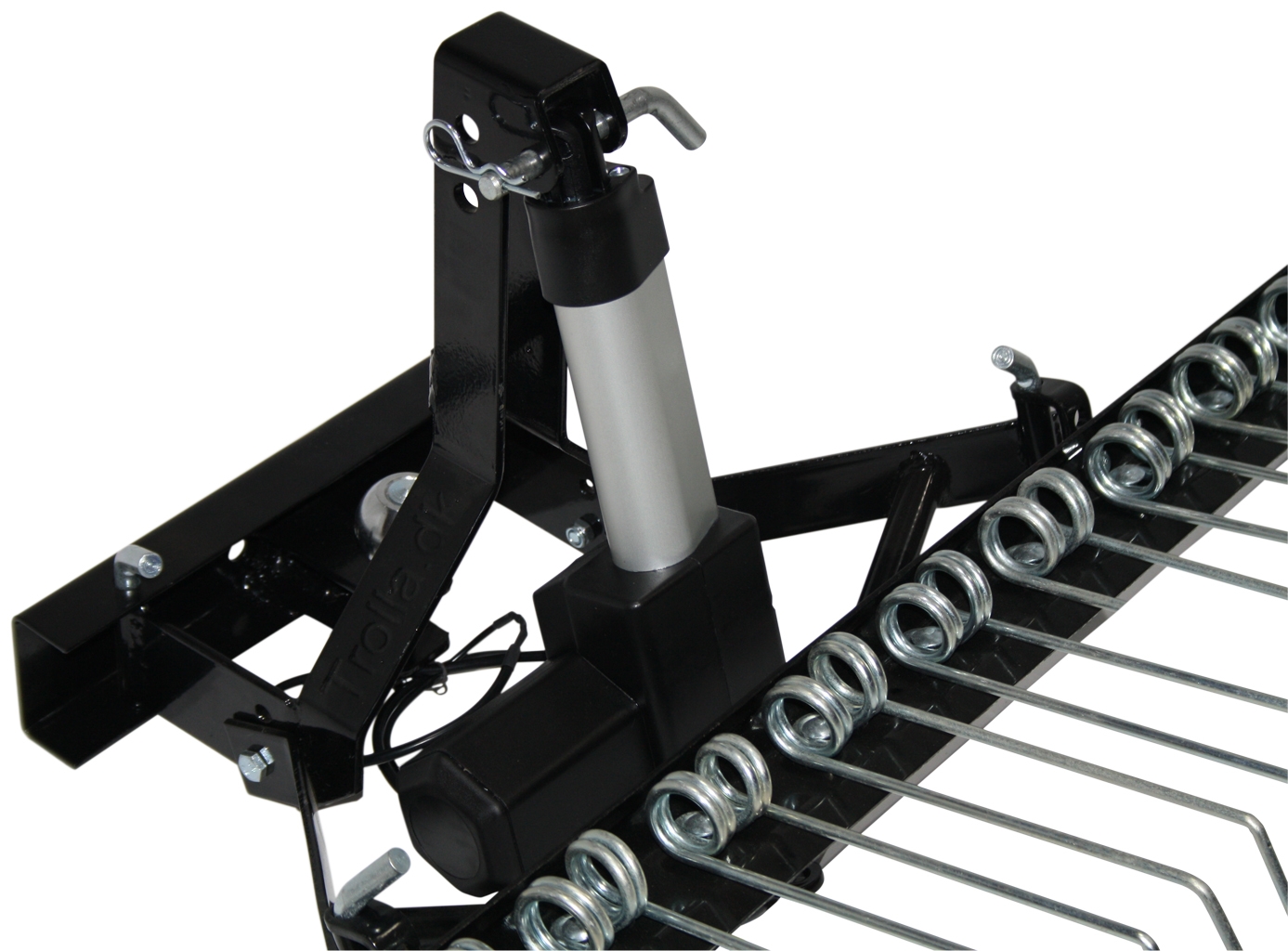 Til bagmontering på havetraktor / Rider / Zeroturn / ATV*/br> Denne Trolla SYSTEM pakke indeholder Følgende: TS Grundmodul med kombi træk-/kuglekobling Art. 12063. Monteringsplade 330x80x37 mm med kombi kuglekobling og gaffeltræk m/splitbolt TS Gårdrive 120 cm Art. 12079 med 15 stk. 6 mm dobbeltfjedre TS el-aktuator Art. 12062 med hæve / sænke kontakt og sikring Modulerne kan løftes under transport via el-aktuatoren *Til ATV kræves monteringsplade Art. 12059Levering