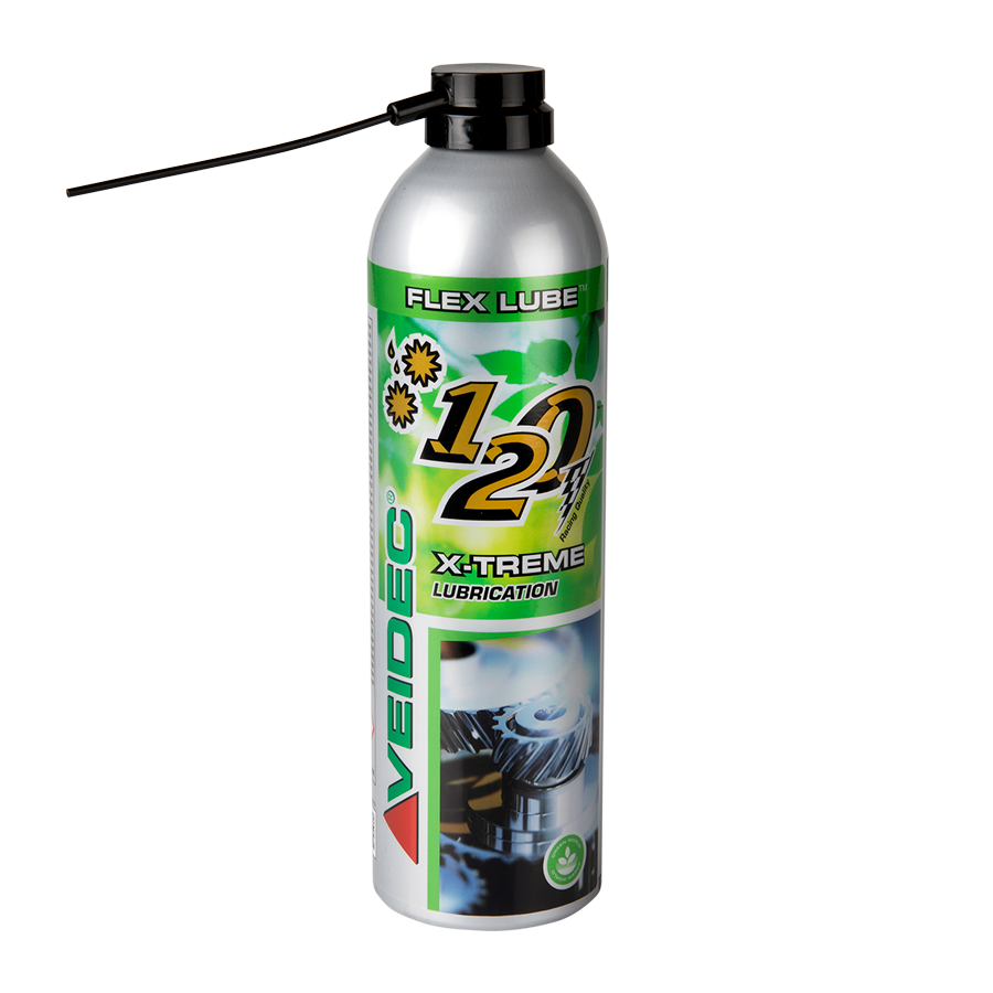 Veidec Flex Lube X-treme 500 ml Green World- og NFS-klassificeret (H1) smøremiddel med ekstremt lav friktion og fremragende, gennemtrængende, smørende og beskyttende egenskaber. Syntetisk PTFE-smøremiddel med en speciel sammensætning af syntetisk olie og teflon samt et middel, der giver fremragende indtrængningsevne. Dette gør Flex Lube perfekt til bl.a. gevind, wire og låsemekanismer. Derudover forhindrer Flex Lube korrosion, er fugthæmmende, giver en langtidsvirkende smøreeffekt og er praktisk at anvende grundet lange og korte dyser samt Up & Down funktion. Flex Lube er både Green World samt NSF klassificeret (H1) til anvendelse i og omkring levnedsmiddelproduktion som for eksempel smøremiddel, rustopløser samt rustbeskyttelse.