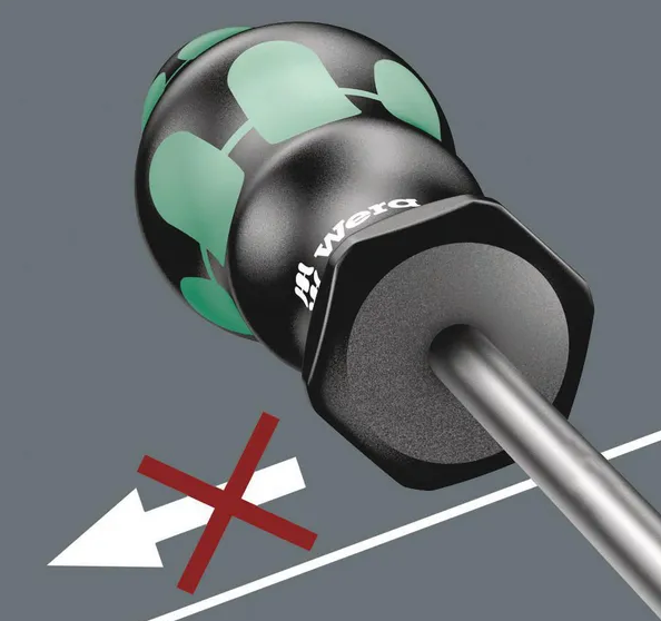 Rullesikring gør at skruetrækkeren ikke kan rulle væk på arbejdsstedet.