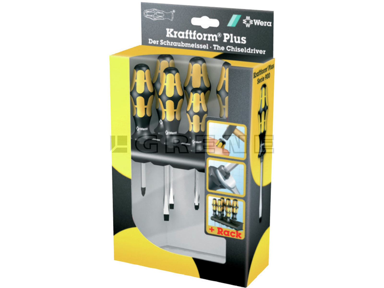 Til skruer med lige kærv og Phillips kærv. Gennemgående klinge med slagkappe.